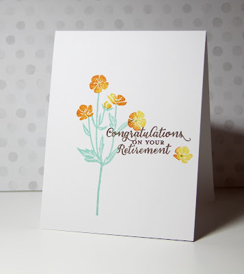 I used Stampin' Up! Wild About Flowers stamps. Inks are Pool Party, Daffodil Delight, Pumpkin Pie, and Soft Suede.