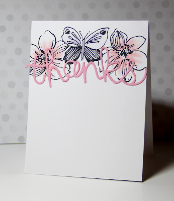 It's time for another CAS(E) This Sketch Challenge! Chrissy's sketch is AWESOME! I had so much fun thinking up a card for it. :-) I ended up with flowers and a butterfly in soft pink and purple.